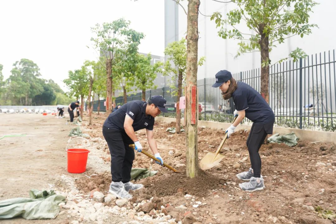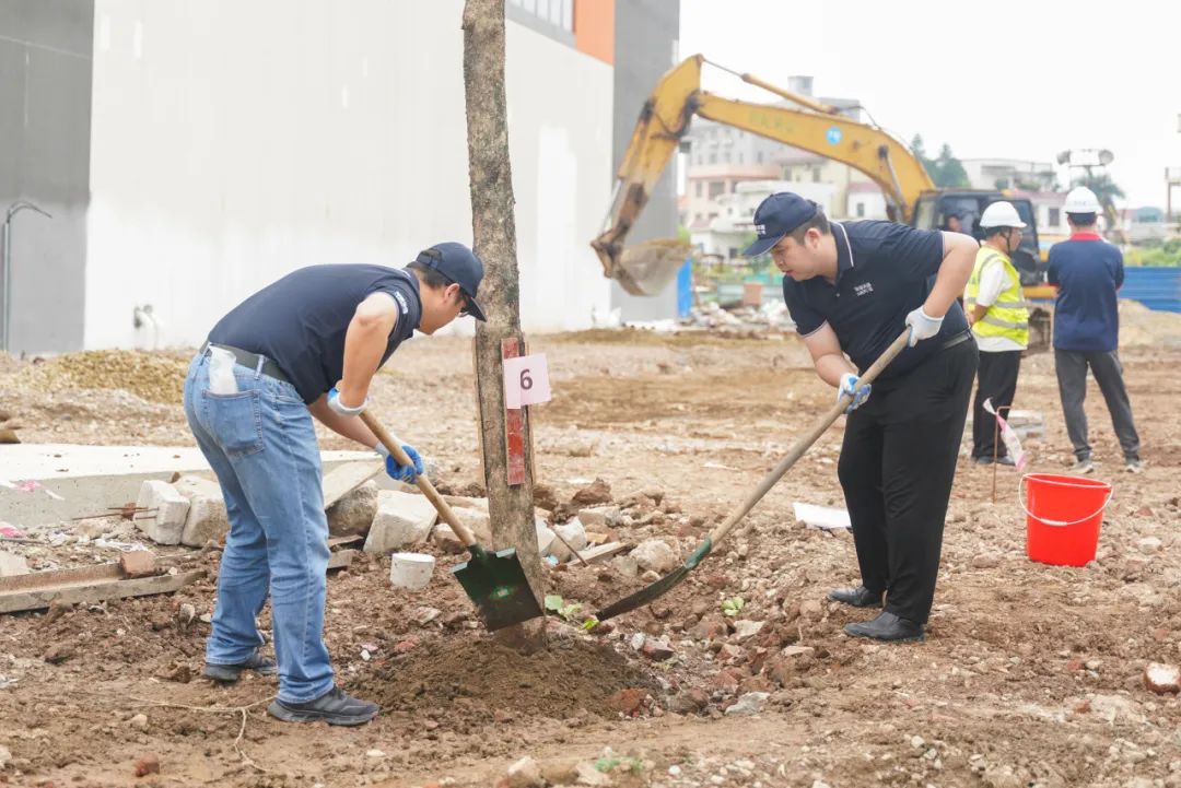 春回大地,万物复苏!4月3日,聯豐集團总裁陈健涛、董事曾佳燕、相关部门负责人及支部党员等在聯豐(大湾区)智慧供应链产业园开展“春生万物,共植希望”植树护园环保主题活动。